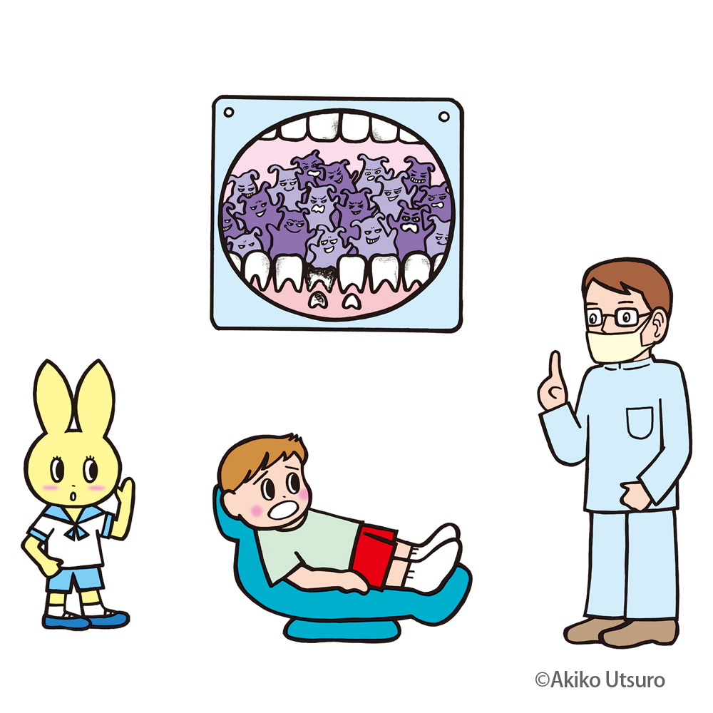 甘い物を食べすぎた後に、歯を磨かなかったひろしくん。お口の中にはバイ菌がいっぱい!虫歯の原因や、虫歯になるとどうなるのか・・・歯磨きの大切さなどをわかりやすく説明します。